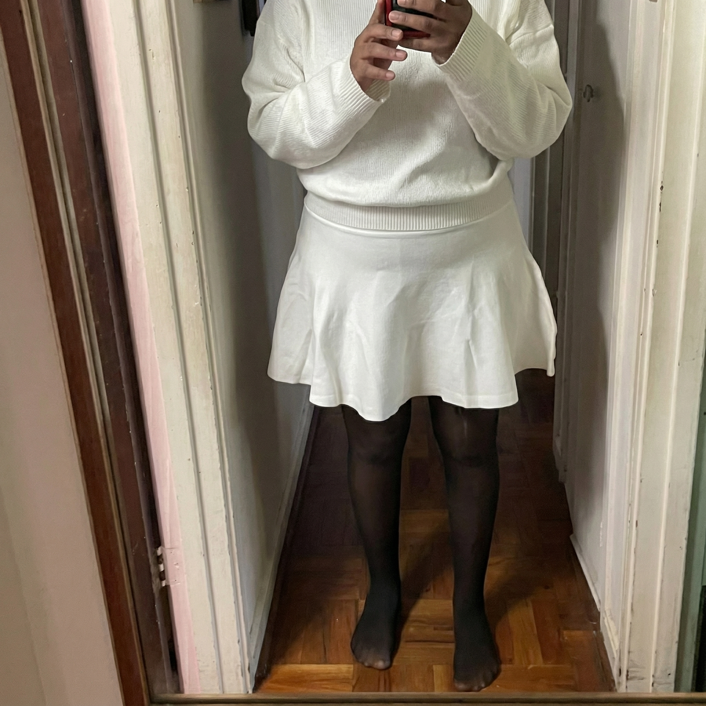 Absolutely obsessed. It looks like a cute two-piece set but feels like a cozy oversized sweater. Thick, stretchy, not see-through at all. Perfect fall outfit—definitely grabbing another color.