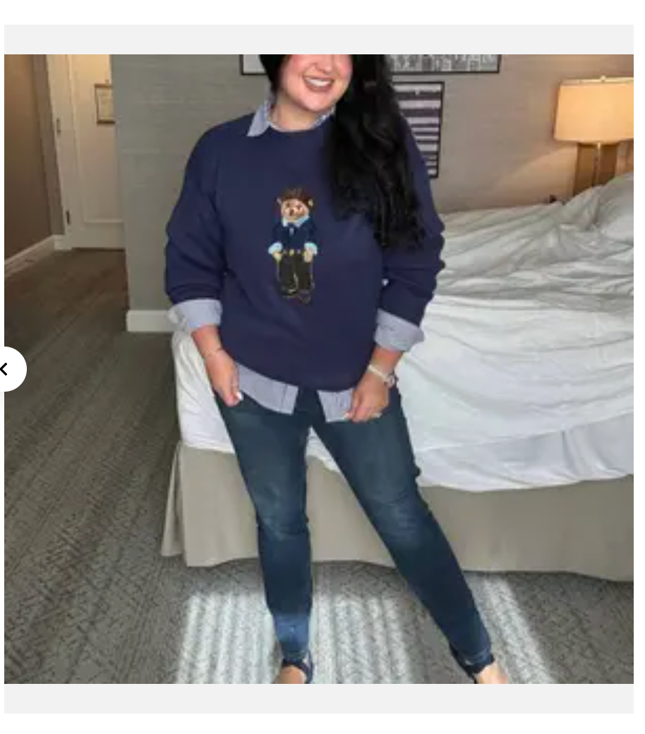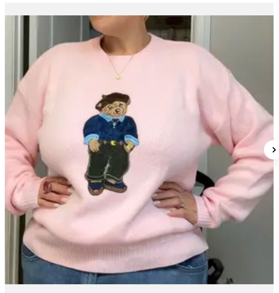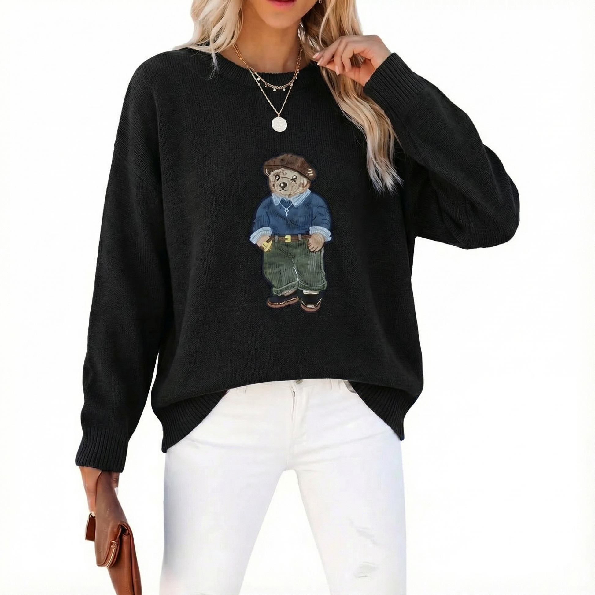 Finally a sweater that's cute AND comfortable. I'm usually between sizes so I went with the larger one — fits perfectly for that cozy oversized look. The bear design is so charming.