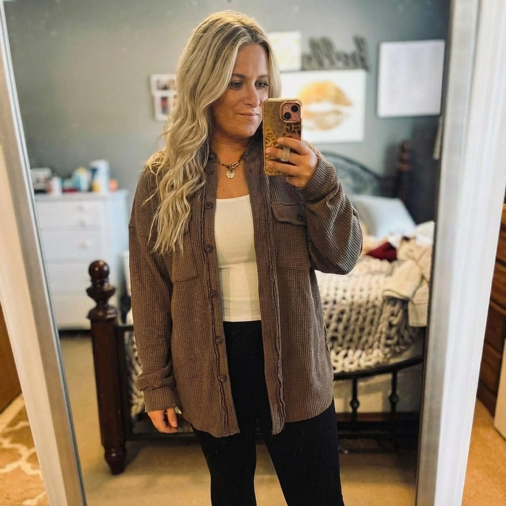 I was looking for something lightweight but still cozy, and this shirt is perfect. The waffle knit feels soft and breathable but still warm enough for layering. I’ve already worn it to brunch, the office, and even just lounging at home. So versatile — love it!